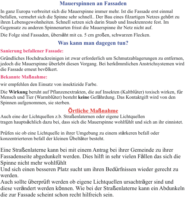 Mauerspinnen das große Thema der Fasade